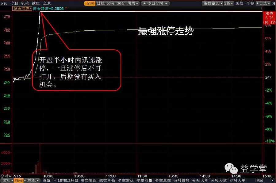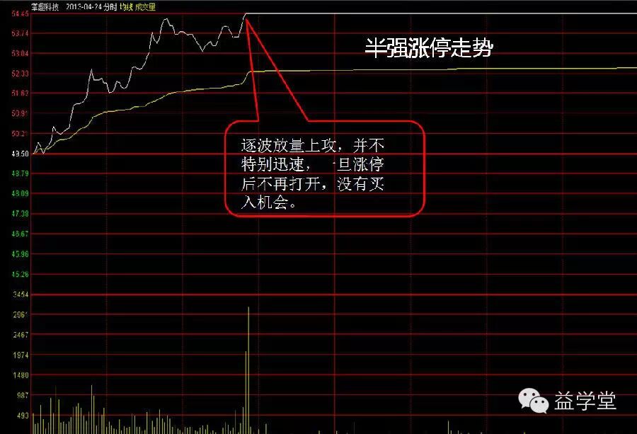 2、半强涨停走势:封上去就不再打开,与时间无关。