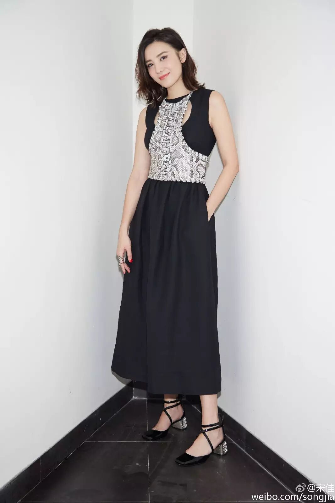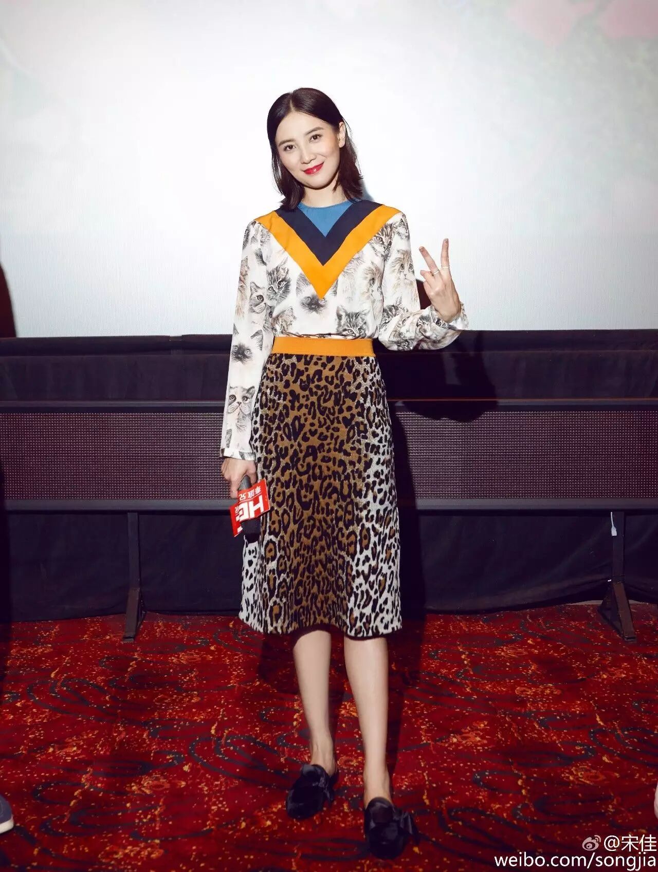 身高一米七三自然能hold住裙装,穿好了豹纹元素也好看,小花在进行电影宣传的时候穿了两套有豹纹元素的裙装,黑色长裙 豹纹元素背心突出层次感,同款黑色表姐在今年在lv也穿过~