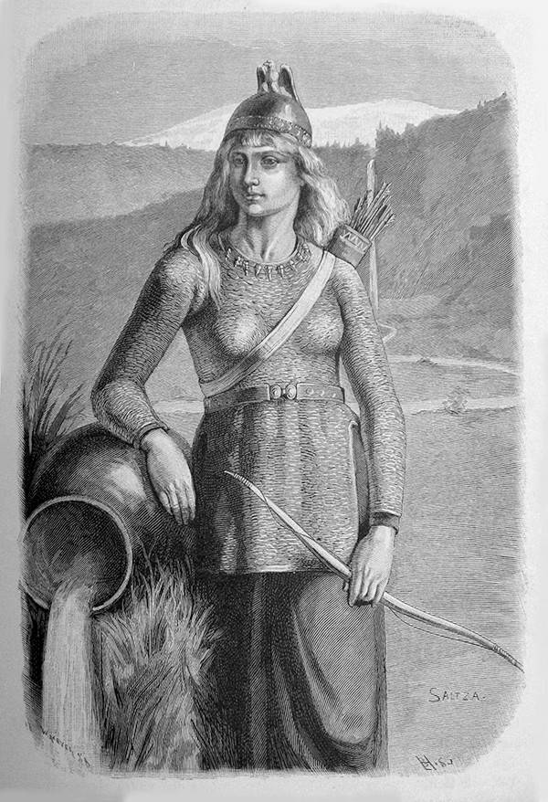 话说巨人Thjazi有个女儿叫Skadi。Skadi英武霸气,是滑雪女神,射箭女神,冬季女神,高山女神。总之是战斗力极强、一个打八个的女战神。请看大屏幕。
