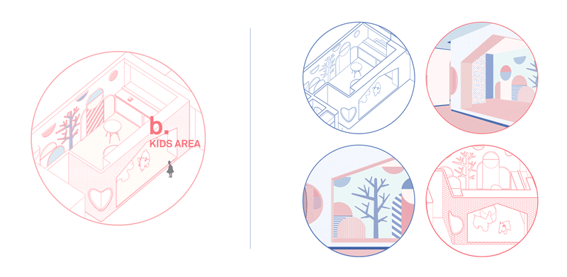 在空间中建立信任是RIGI这次设计的一个重点。成人的世界是复杂且缺乏安全感的,过分的殷勤反而传递出不友好的距离感,所以设计师建议业主在入口的重要位置规划了儿童体验区,对孩子的关怀就是对成人的关怀,一个能关怀孩子的诊所某种程度上就能传递诊所的关爱与责任感。