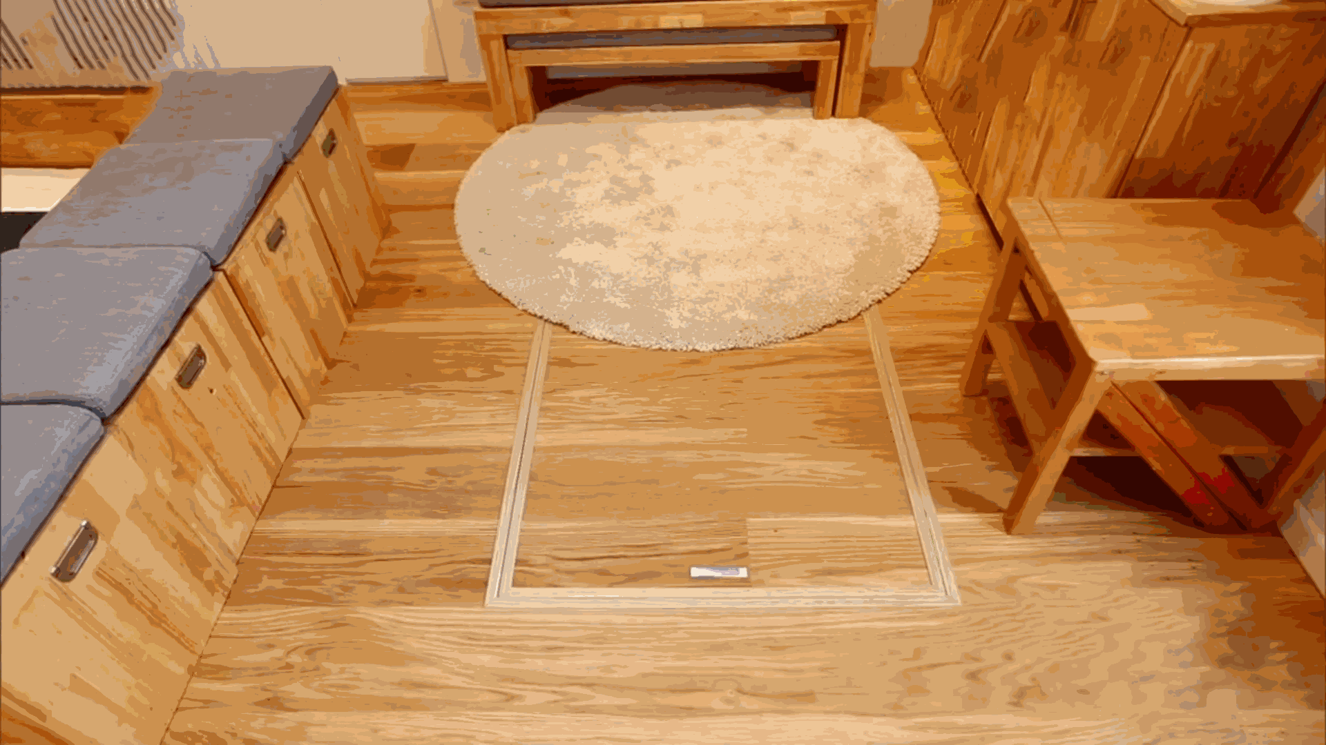 进门处的鞋柜柜门,原来是凳子,小孙女以后就能坐着换鞋了。