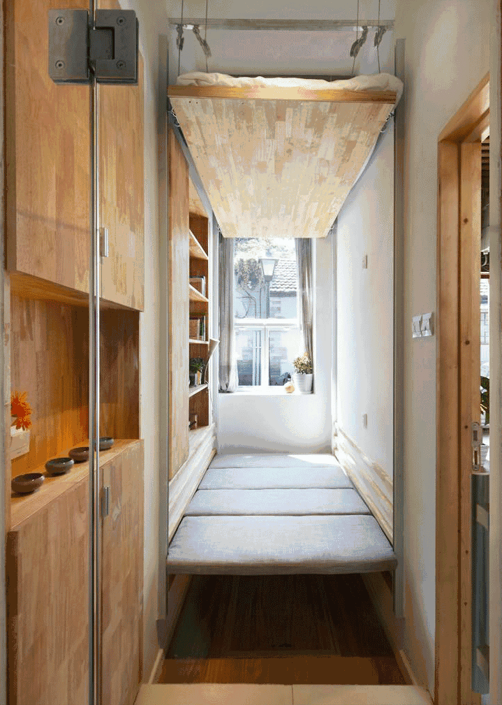 客人来了,开关一按,床就成了榻榻米。