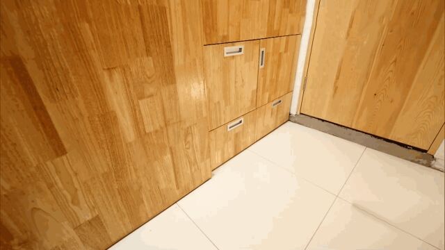 而这中间隔着的,不是实墙,而是储物柜。业主家东西多,正好。