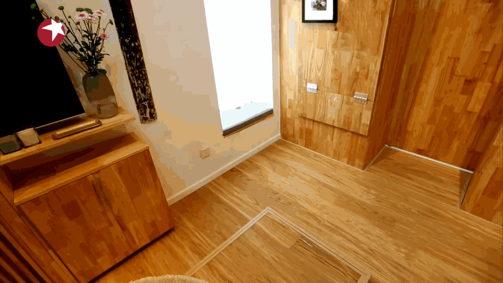 而边上一个下沉1米的空间,是青山给孩子的惊喜。旧床垫没了,可是孩子喜欢的蹦床还在。