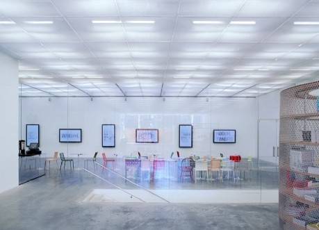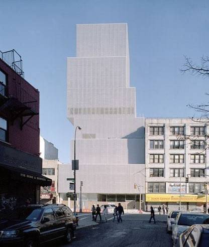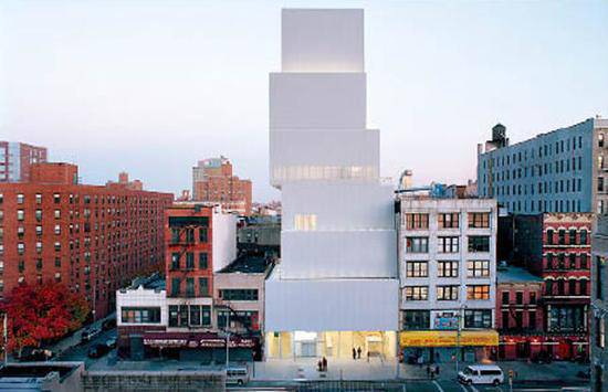 位于曼哈顿的这个七层楼高的建筑,形如不同偏向的盒子堆叠而成,外面裹上一层亮白的外衣,通过银色镀铝的金属网格,城市街景和星空奇景都可透入其中。
