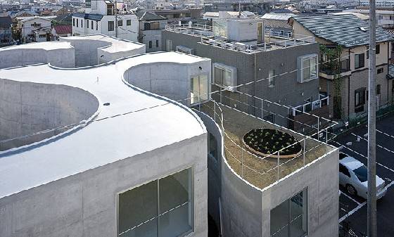 日本Okurayama公寓建于2008年,和妹岛做的一些其他的集群建筑一样,都是主要在探讨建筑和室外空间的关系问题。这种室内外的空间关系存在于东方的传统文化之中,一种通透,融合,不分内外的交融关系。妹岛曾经说:“我觉得我想找到某种不用透明材料的透明性,不是物理上的透明,而是通过平面组织的方法。”——这个方法应该是将室外的空间纳入到这个建筑的平面设计中,成为一个整体,建筑的内部和外部在平面上彼此穿透,从而达到透明。
