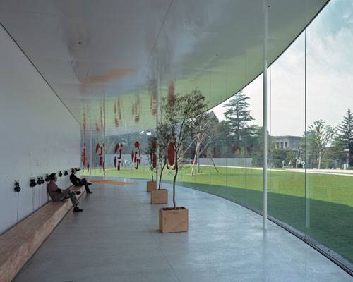 妹岛和西泽设计的金泽21世纪美术馆,赢得2004年威尼斯建筑双年展金狮奖,可谓是“通透”的典范之作。这是一座低矮的圆形建筑,像一个飞碟悬浮在市中心绿化地带。美术馆的外观是一个正圆,而在巨大的圆盘上安置有大小、高低不同的立方体和圆柱体。这座美术馆没有正门,所有的面都可以被认为是正面,即四面八方的人都可以进入美术馆,在这里相聚相会。美术馆并不只有展览功能,更多时候,这是人接触城市的平台,如何温和地与城市融为一体、用一种亲切感吸引公众,是一个重要议题,所以我使用透明以及圆形为元素。