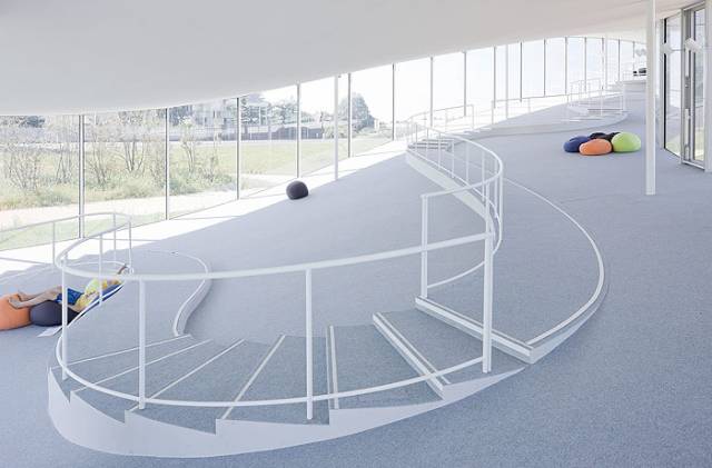Sanaa建筑事务所在瑞士洛桑EPFL设计的劳力士(Rolex)学术中心既是一座学术中心也是一座社会空间。它有着单一的流动空间、缓坡和平台,围绕着一系列内部露台而起伏,复杂的弯曲屋顶用隐藏的梁柱支撑。