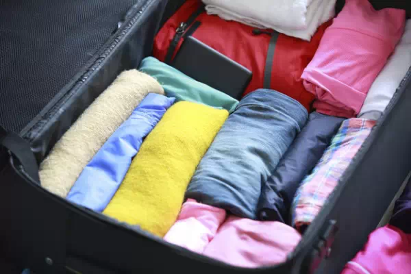 4. 把衣服一件件卷起来塞进行李箱。