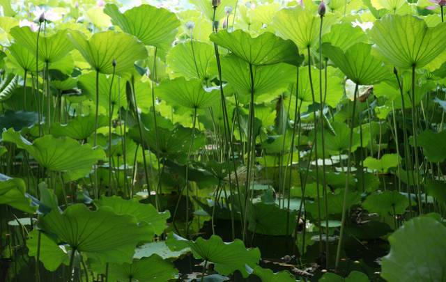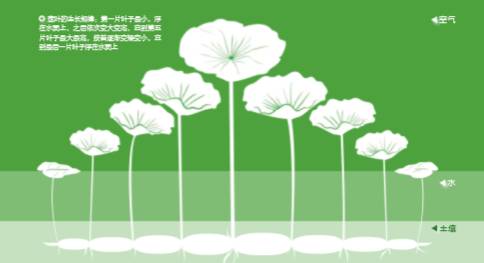 莲叶高矮交错,有的紧紧漂浮在水面,有的亭亭玉立于水面之上。莲是由一粒种子在淤泥中长出来的,从淤泥到水面,莲叶经过了怎样的历程,才形成这样高高低低、错落有致的景象呢?