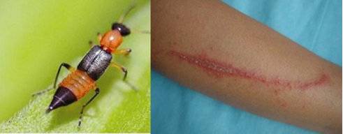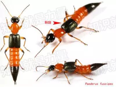 在数万种隐翅虫中,具有很强毒性的只有大概数百种,其中有大约20种在我国有分布。毒隐翅虫的颜色比较鲜艳,这是一种警戒色,告诉天敌,我有毒,别惹我!某些隐翅虫的毒液确实厉害,会引起皮炎。以最常见的梭毒隐翅虫为例,患者接毒液触后,数小时内会有瘙痒、灼烧的感觉,患处呈红色条索状,外观有点类似烧伤,会有小水泡,一般7-13天就可痊愈,虽然会很难受,很难受,但一般不会致死。所以,剁掉手指头什么的,略夸张了……但毒隐翅虫,也不会随意动用自己的毒液,这是它保命的底牌,产生不易,也不愿轻易动用。
