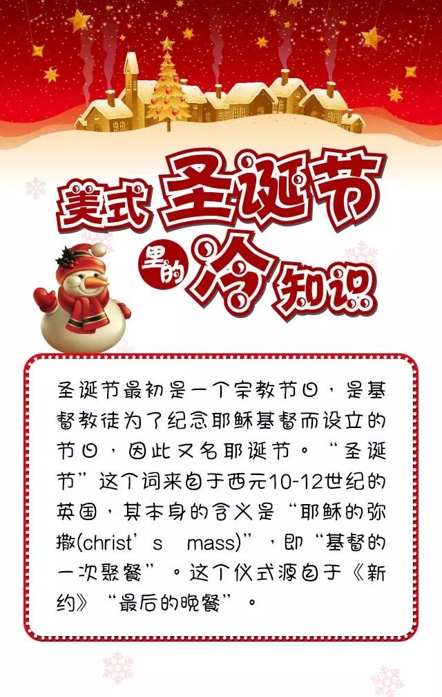 可以说从感恩节过后的第二天,美国人就开始为圣诞节大忙特忙起来。全国各地都会竖起无数棵圣诞树,美国政府高官会在圣诞节前为白宫前的圣诞树举行隆重的点灯仪式,吸引大批民众参观,美国军乐队也会在现场演奏助兴。那么我们不妨一起来了解一下关于美式圣诞节里的冷知识吧!请戳“http://kpcn.dodoca.com/phone/websitey?id=102”,我们一起“涨姿势”吧!