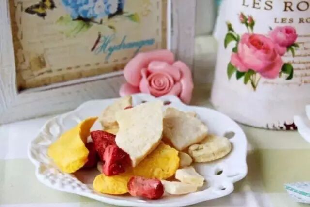 如今市面上还有一种冻干水果,制作时先将水果中的水分冻结,然后在真空的环境下将水果中被冻结的水分升华。可以保存其原有的色香味形,而且不含任何其他原料,是很理想的天然卫生食品。不过由于真空干燥成本较高,所以价格相对较贵。