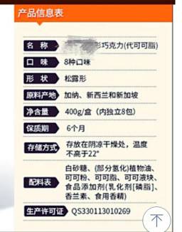 需要特别指出的是代可可脂,代可可脂是以植物油为原料,用氢化或非氢化方法制成的一种熔点和口感近似于可可脂的配料,常用于一些成本略低的巧克力中。