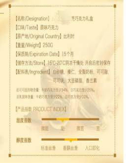 挑选巧克力必定需要感官的评价,但是去超市购买时只能看到包装并不能品尝,所以选择包装完好、生产日期比较近的,产地为比利时的巧克力比较好。