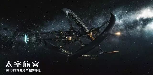 (“阿瓦隆”号飞船有三条优美的弧形旋臂,《太空旅客》电影剧照)