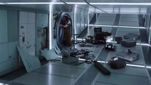(吉姆试图发挥工程学才能弄清飞船的结构,《太空旅客》电影截图)