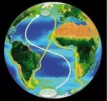 北极燕鸥从北欧和格陵兰岛的繁殖地出发,先飞到北大西洋觅食。当吃饱喝足之后,北极燕鸥会分成两支,一支沿着非洲西海岸向南飞行,另一支沿着南美洲东海岸向南飞行。尽管路线不同,但是北极燕鸥的目的地都是冰雪覆盖的南极大陆。