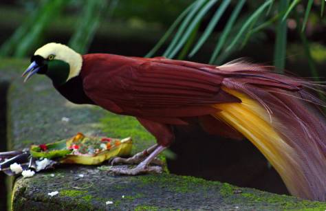 分布在新几内亚及其附近岛屿的极乐鸟科鸟类,也有美妙的舞蹈。极乐鸟科有16属41种,雄鸟大部分色彩缤纷,具有复杂华丽的饰羽,雌鸟则体色暗淡。雄鸟一般大于雌鸟。雄鸟求偶时,会抓住机会展示自己绚丽的色彩和不同寻常的装饰,并用舞蹈、造型和其他展示动作来突出自己的外表,为雌鸟献上一场叹为观止的表演。这样的表演可能持续数小时,对于某些种类的极乐鸟而言,这会占用它们大量的时间。雄鸟会一直表演,直到雌鸟以身相许。