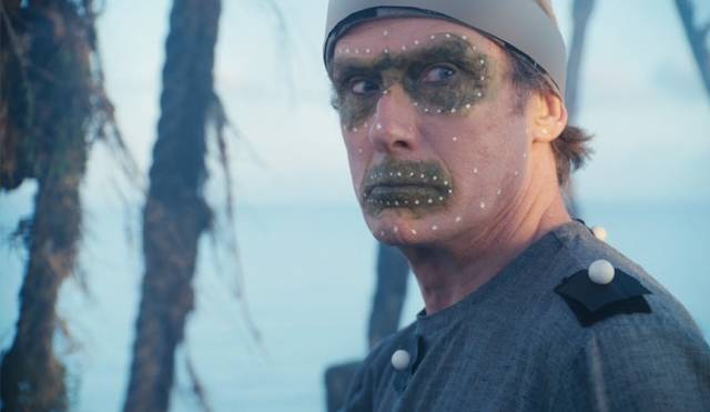 3、加入特效:“修图师”要把原来拍摄到的画面中衣着古怪的人类演员“P掉”,换上已经做好的惟妙惟肖的猩猩。