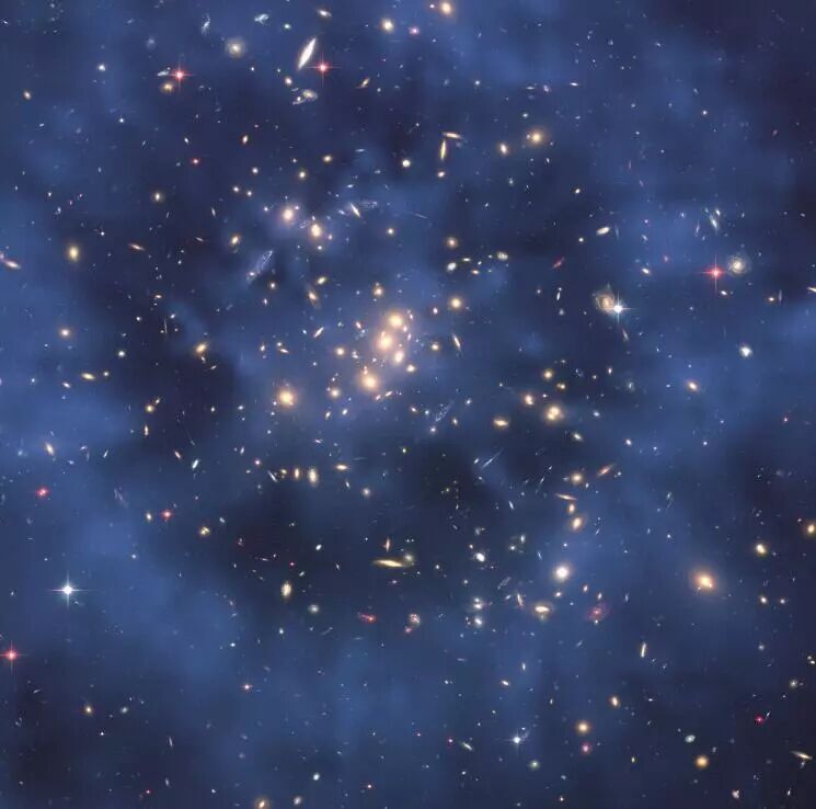 后来,很多观测结果表明:宇宙中不仅存在暗物质,而且是普通物质的若干倍。 无论暗物质在宇宙中什么地方集结,普通物质都会如影随形。普通物质在暗物质压倒性的引力作用下,会无可抗拒地被吸引过去。这些普通物质形成了恒星、星系等。