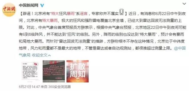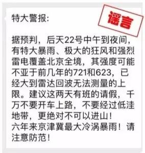 前几天,一则新闻迅速在朋友圈被大量转发,大致称北京将有堪比7·21的特大暴雨,然而不久后,就有官方门户网站站出来辟谣。