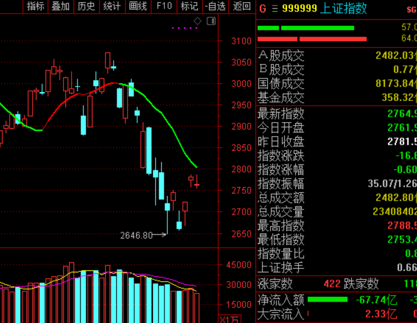 大盘经过了较大的反弹后,到了13均线压力线附近,当反弹被均线压制后,会发生什么? 尤其是现在的无量反弹,而且北向资金最近没有明显流入的动作。我的看法是,短期有回补跳空缺口的可能。