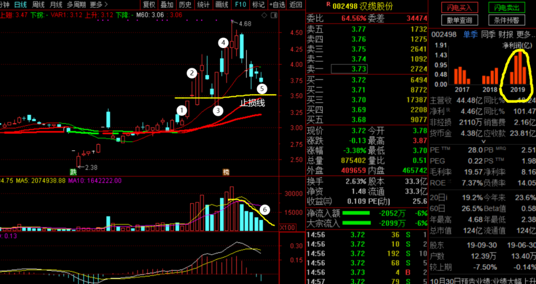 今天我看了一下特高压板块,这个低价股出现了1,2,3,4,四个涨停板,这是一个启动的重大信号,该股的业绩今年大增。本次调整是受到欧美股市暴跌的影响,是缩量下跌,见箭头6处。后市我看涨,而且容易拉板。
