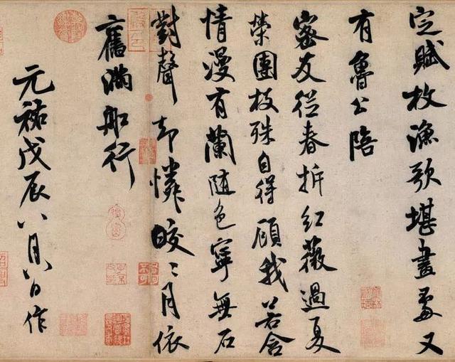 后来,这个卷轴流到经湖州(浙江吴兴)郡守林希的手中,他也等了20多年,直到他在一次文人聚会中遇见了38岁的米芾,才算为这卷丝绢找到了知音。