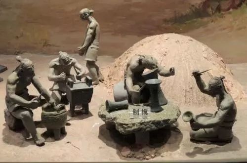 (*注:范铸法又称模铸法,先以泥制模,雕塑各种图案、铭文,阴干后再经烧制,使其成为母模,然后再以母模制泥范,同样阴干烧制成陶范,熔化合金,将合金浇注入陶范范腔里成器,脱范后再经清理、打磨加工后即为青铜器成品。——看不懂别问我,我也是百度的)