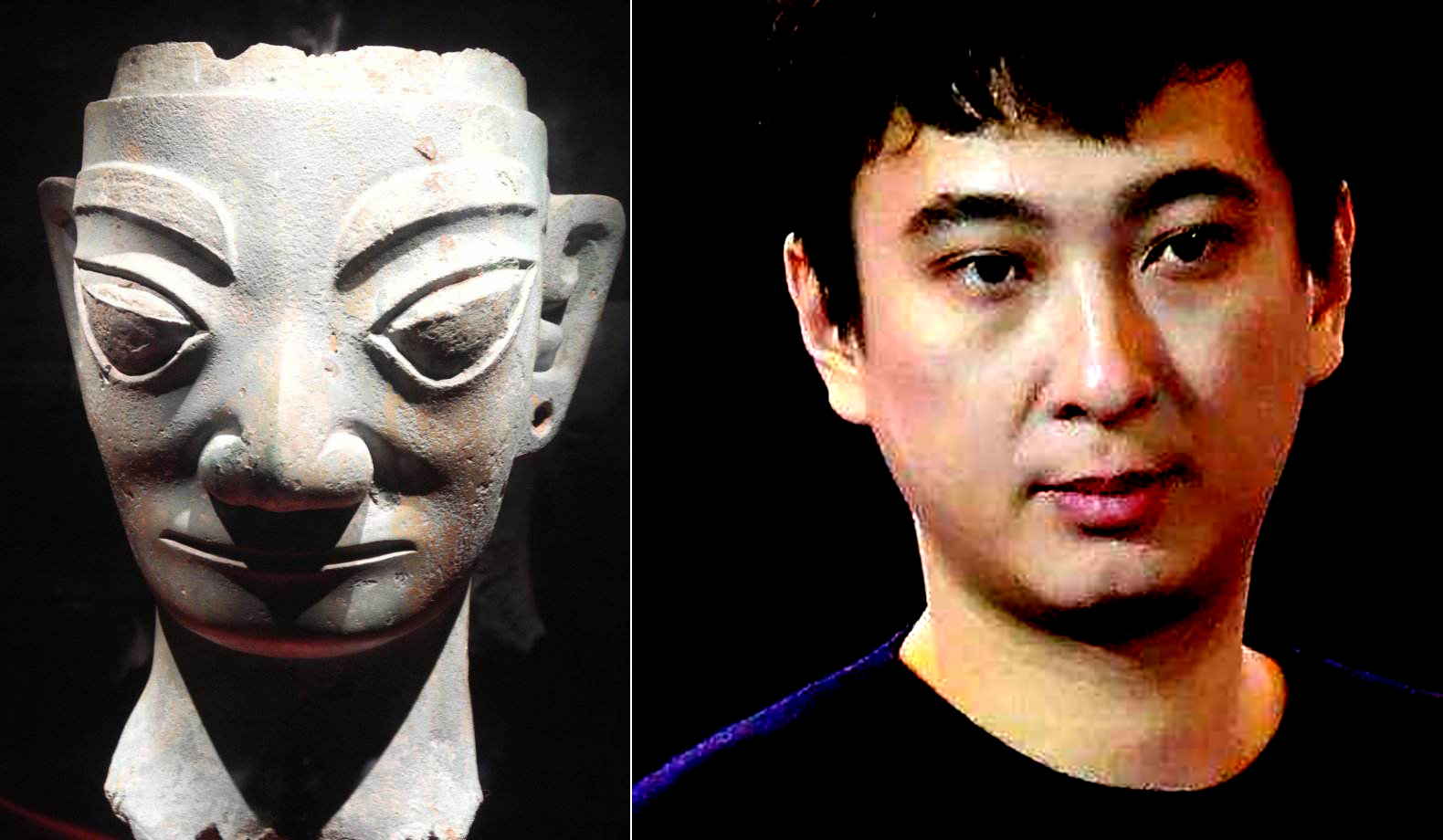 诸多青铜面具包括三种纵目形象:一种是两眼向上挑,就是我们平时说的“凤眼”;一种是眼球向外突,甚至突出成了柱子;还有一种是两眼之间有竖着的第三只眼,就像二郎神杨戬似的。