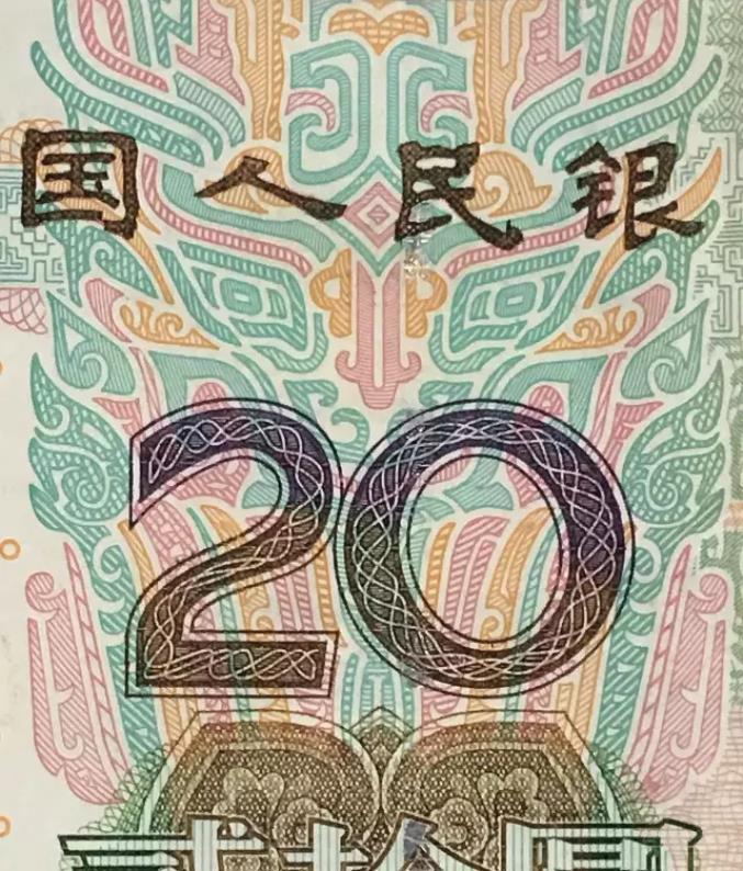 我们现在最常见的饕餮纹就是在第五套RMB20元币的正面,“中国人民银行”和“20”数字之间的花纹——我不说估计你也没注意过吧?