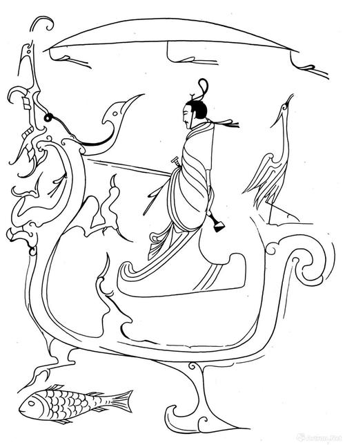 第二幅是1973年5月从长沙子弹库楚墓出土的《人物御龙帛画》。