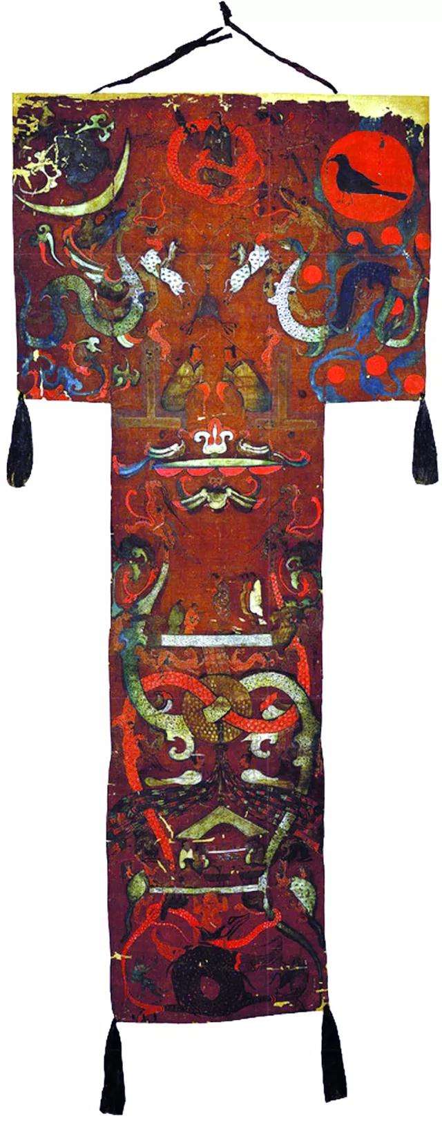 最主流的观点认为:图画是祈求死者灵魂升天,画中的夔龙和凤鸟就是引领灵魂的神兽。