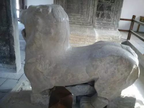 虽经数千年风雨,但我们还是可以看到石狮还是比较写实的,主要骨架甚至毛皮刻线均清晰可辨,特别是脖间的鬣毛,十分明显。