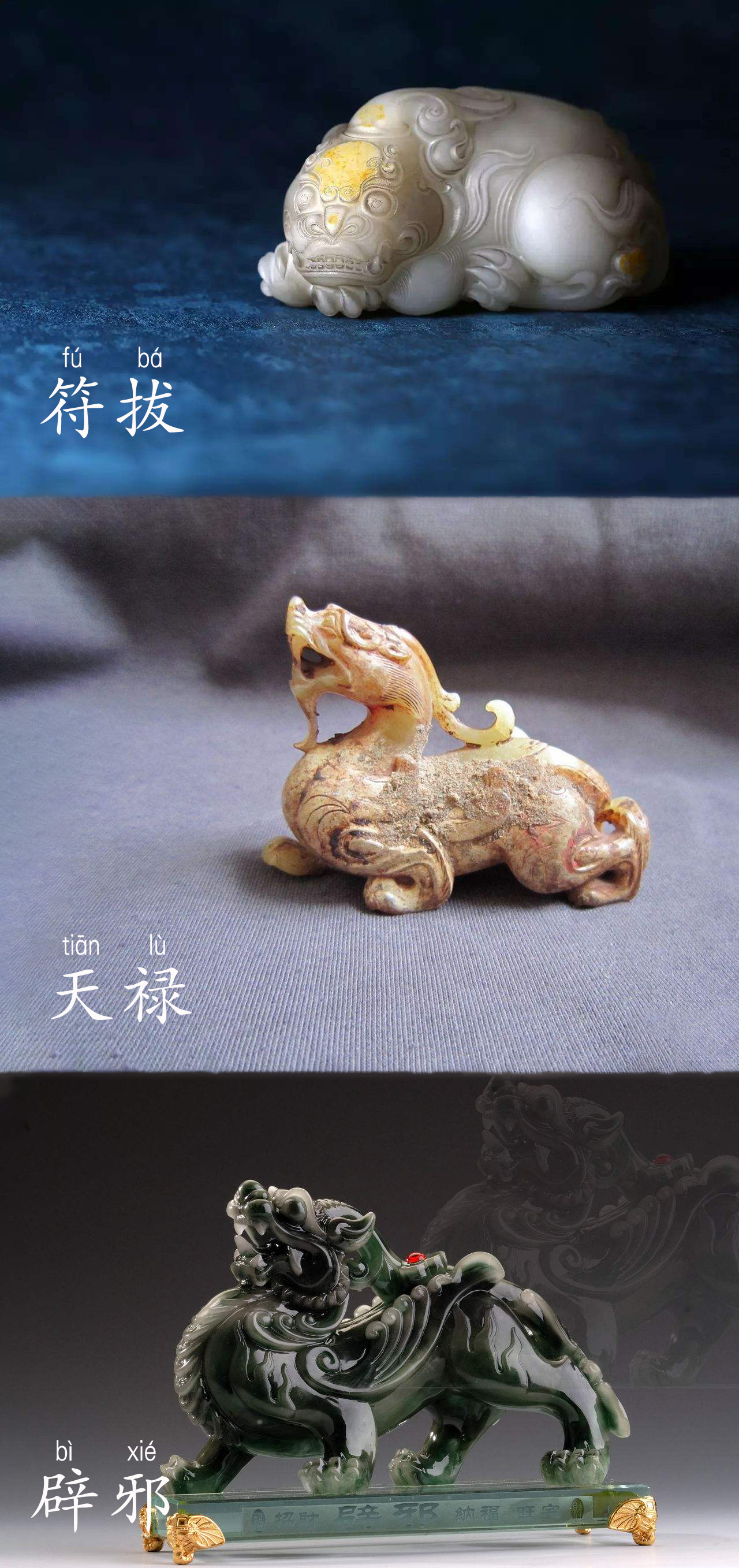 辟邪其实可以细分为3类,无角叫“符拔”(又叫桃拔,总算又提到我了……),有一只角的称为"天禄",有两只角才叫"辟邪"。