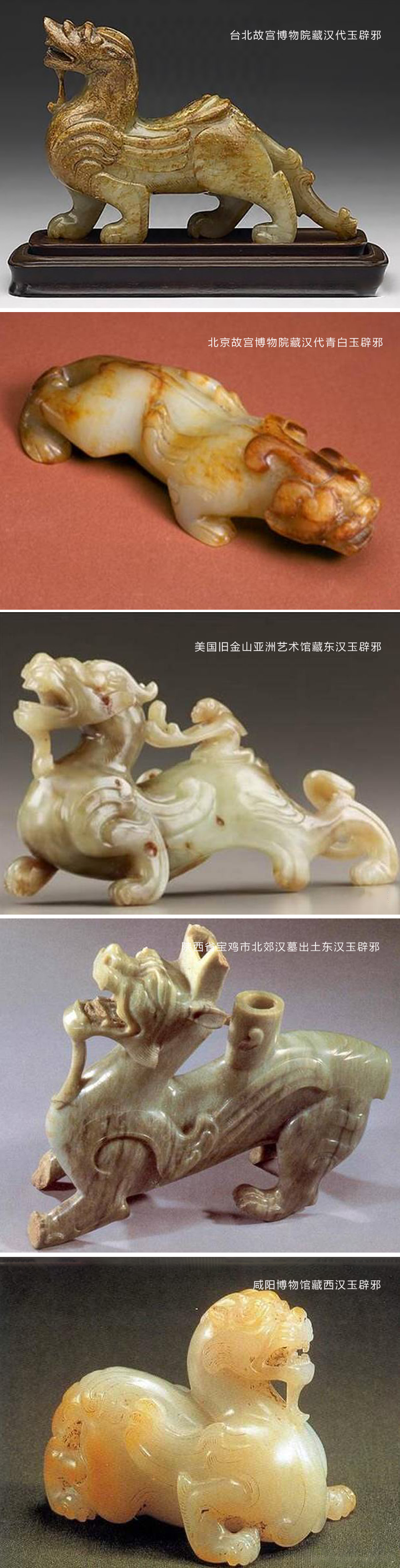 汉代玉辟邪较精美者有北京故宫博物院藏四件,台北故宫博物院藏一件和一些散失传世品。