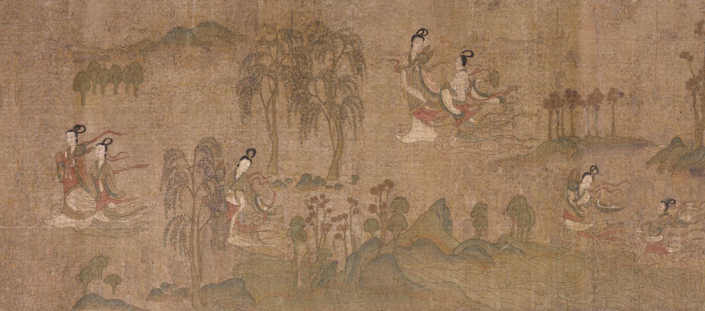 北京故宫馆藏《洛神赋图》为手卷式绢本,设色,纵27.1厘米,横572.8厘米。