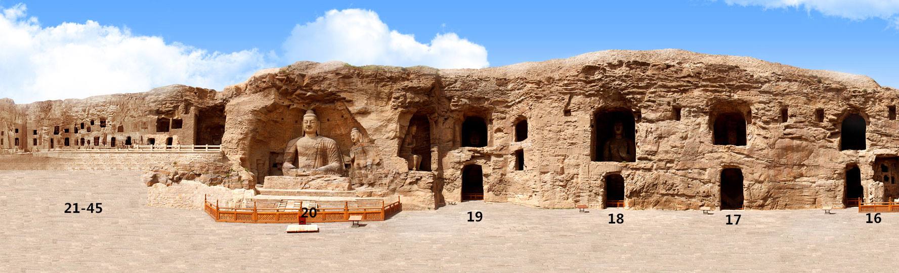 最先开凿的叫做“昙曜五窟”,也就是现在编号为第16-20号的石窟。