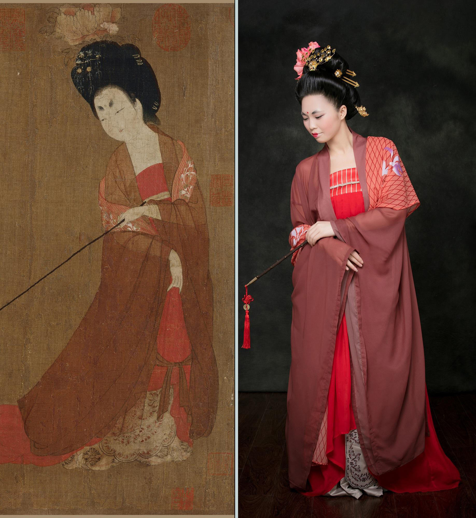 再结合前面关于此画来源的故事,我们有理由怀疑:《簪花仕女图》是不是就是记录了四大美女之一杨玉环的真容?