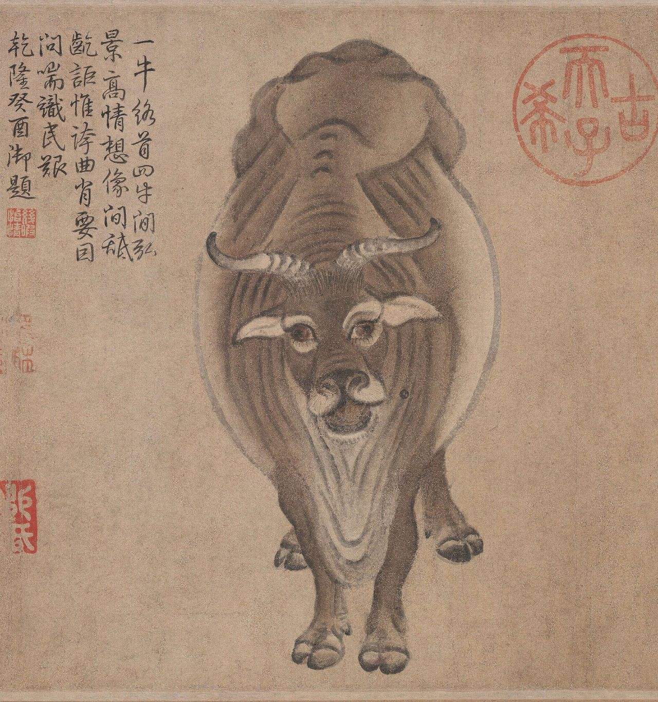 要知道中国画传统中就没有焦点透视这一说,但韩滉通过细致的观察,把牛的正面透视给画准了,这真的是难能可贵。