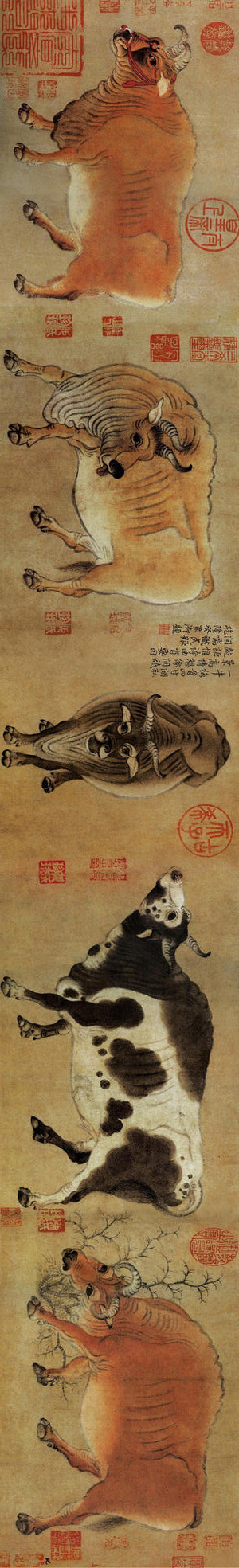 《五牛图》的五头牛我就不做具体描述了,你自己欣赏。不过不知道你发现没有,这五头牛的眼睛,都是在看着你的——它们仿佛隔着屏幕在和你交流。