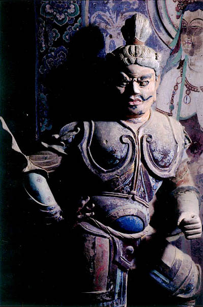 第45窟的天王像,竖眉瞋目,身躯魁伟,气势威武,是典型的唐代武士样子;