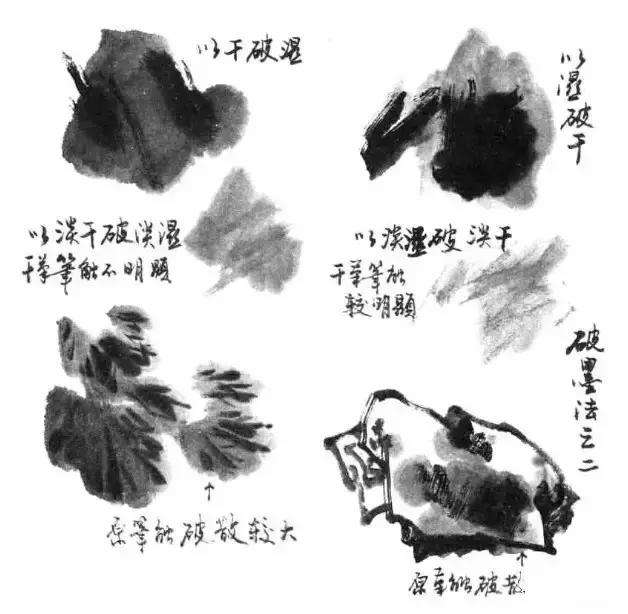 所谓“破墨”,并非“泼墨”。破墨是以浓墨加水,多用以表现山石的阴阳向背。这种渲染之法,丰富了画面的层次与表现力,对山水画的变革做出了重大贡献。
