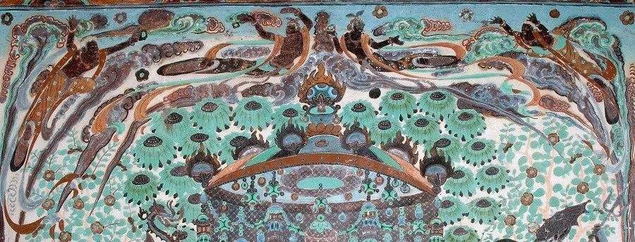 在唐代的莫高窟壁画中,净土变相有125幅左右,其中最值得一提的是盛唐时代的172窟北壁的净土变相。