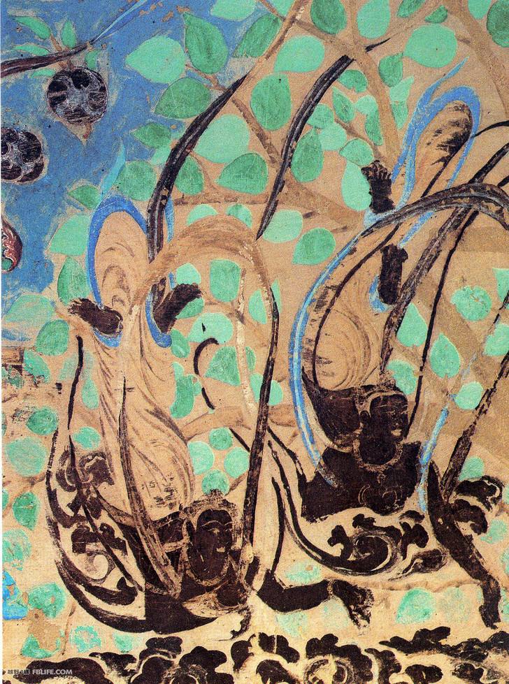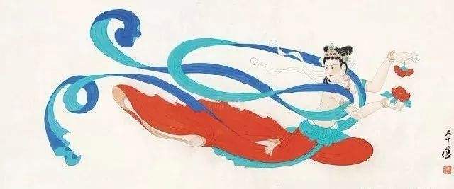 中国的飞天是中国艺术家的天才创作:不长翅膀不生毛、没有神光没法器,就依靠飘逸的衣裙、飞舞的彩带就能给人以凭空飞舞、凌空翱翔的感觉,堪称艺术表现、世界美术史上的一个神来之笔。