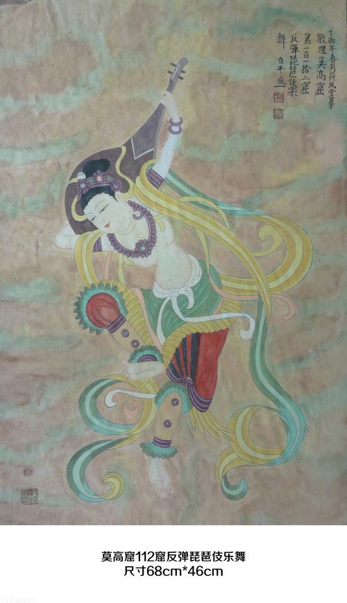 最经典的反弹琵琶飞天就出自敦煌莫高窟112窟的《伎乐图》。