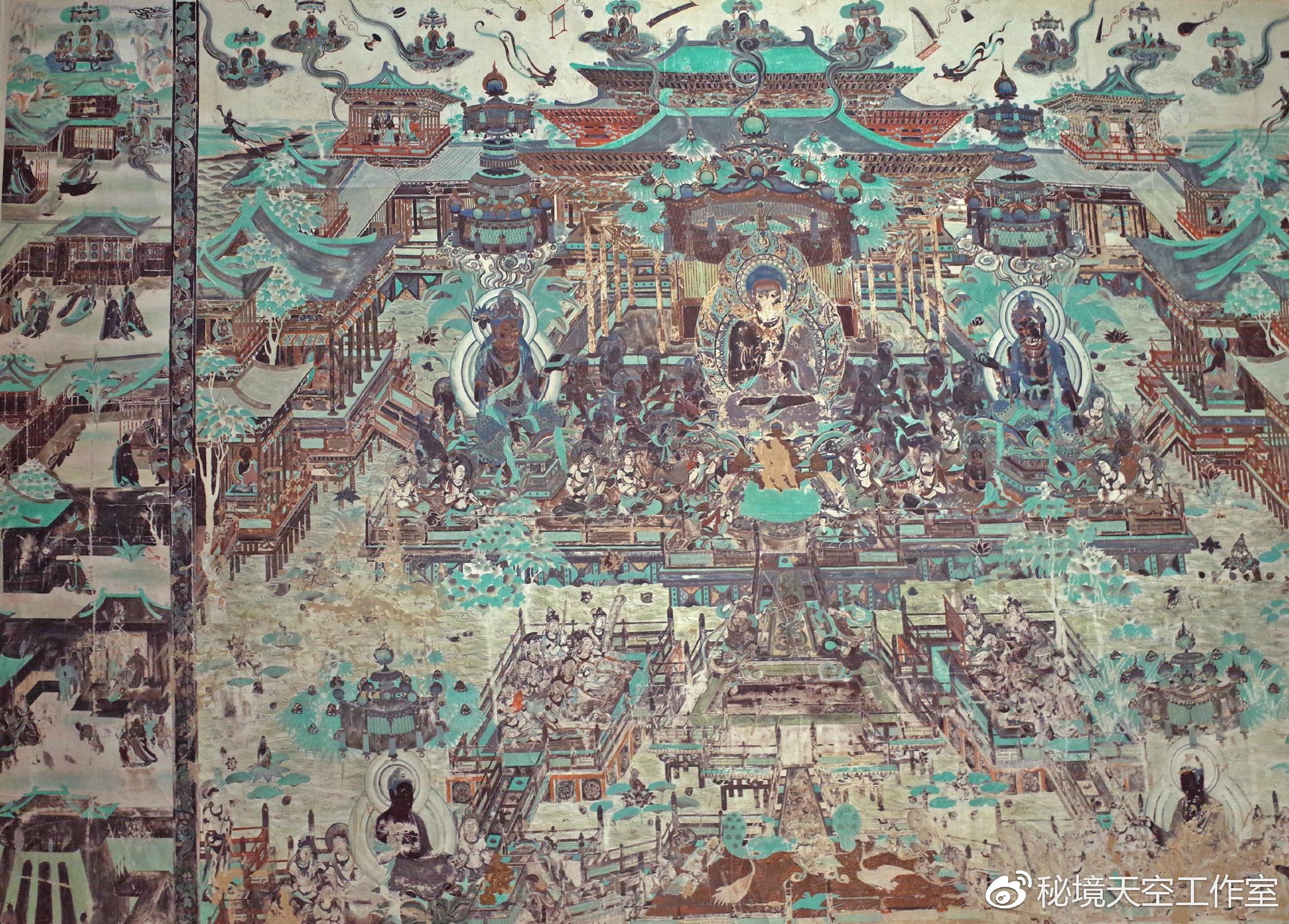 到了隋唐时期,社会安定,解脱苦海的需求让位于追求幸福往生,所以佛教壁画的主要内容就变成了表现西方净土的美好,也就是以净土变相为主。