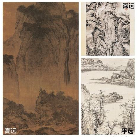 宋代郭熙在《林泉高致》中以画山水为例对“三远法”进行了说明:“山有三远:自山下而仰山巅谓之高远;自山前而窥山后谓之深远;自近山而望远山谓之平远。”