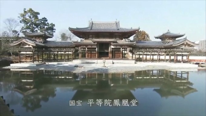 这幅画上的建筑描绘精细、写实,也是中国古代建筑史的宝贵资料。日本的国宝,上了10日元硬币的平等院凤凰堂,就是根据《观无量寿经变图》修建的。